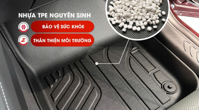 Cụ thể như dòng thảm lót sàn ô tô đúc khuôn nhựa TPE là một trong những dòng thảm ô tô xanh được ưa chuộng nhất trên thị trường hiện nay. Đặc điểm của thảm sàn ô tô nhựa TPE chính là:
